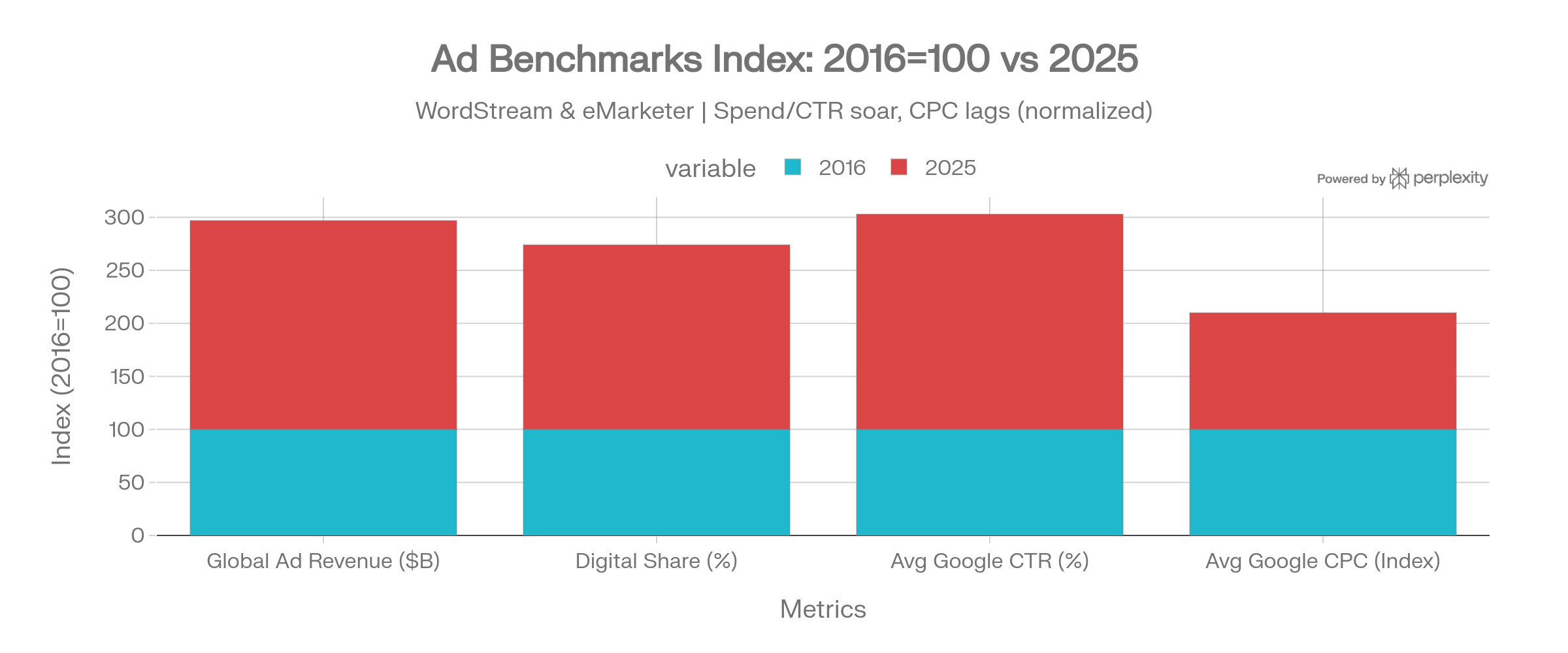 Global ad revenue hit between $979B and $1.08T in 2025—with digital claiming 73–75% of spend, or $715–777B—but efficiency gains have stalled despite the flood of cash. Customer acquisition costs rose for 86% of industries last year, with average CPC up ~10% YoY even as CTR doubled over the past decade.